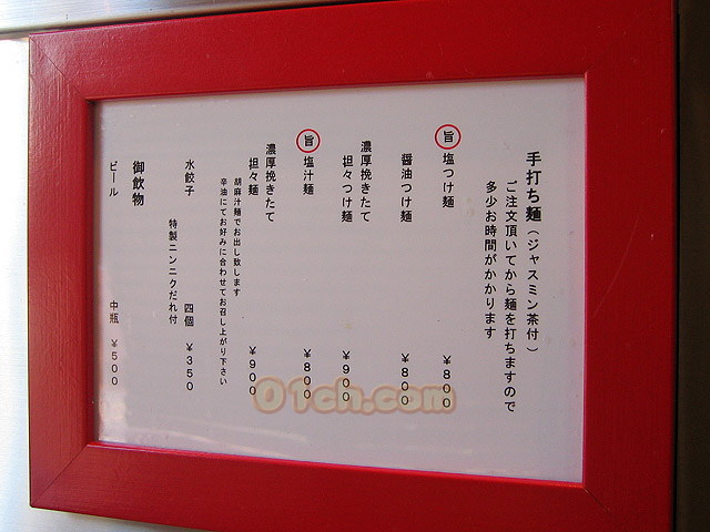 こちらの店主氏は2006年に惜しまれつつ閉店してしまった「餓王」(港区)ご出身とのことだが、その「餓王」の店主氏は「馬賊」で修行したらしい。そう言う意味では「馬賊」の流れを汲むお店となる訳で・・・・「馬賊」の手のべ麺が大好きな私としては、いやが上にも期待値が高まっての訪問となった。